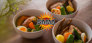 「SAMA」は、インドネシア語で 「~と一緒に」 という意味です。SAMAという空間で、スープカレーを通して、お客様の大切な時間を過ごして頂きたいという思いが込められています。そして一人ひとりのお客様との繋がりを大切にスタッフ一同取り組んでいます。大切な家族、恋人、友達と一緒に、どうぞSAMAをお楽しみ下さい。